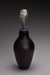 Hib and I began our business relationship in 2000, with Wright Publishing Company producing his Limited Edition bronze sculptures. Recently we have formed a creative partnership, with Hib carving wood figures to sit atop my blown glass vessels.