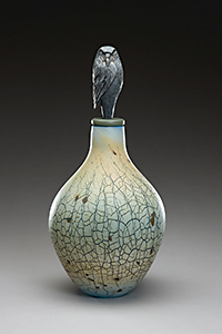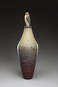 Hib and I began our business relationship in 2000, with Wright Publishing Company producing his Limited Edition bronze sculptures. Recently we have formed a creative partnership, with Hib carving wood figures to sit atop my blown glass vessels.